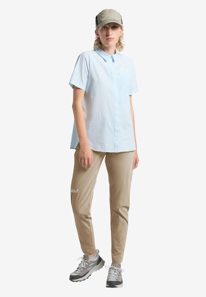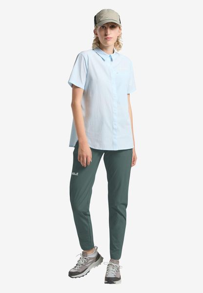"The Hikeout Pants W from Jack Wolfskin are the ideal companion for all women who love hiking and don't want to compromise. These lightweight trekking trousers made from high-quality TEXASHIELD CORE material offer the perfect balance between elasticity and durability. Thanks to their windproof and water-repellent properties, they reliably protect against inclement weather, while the high breathability ensures a comfortable feel even during intensive activitiesu00e4."