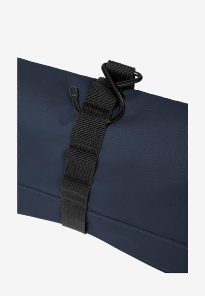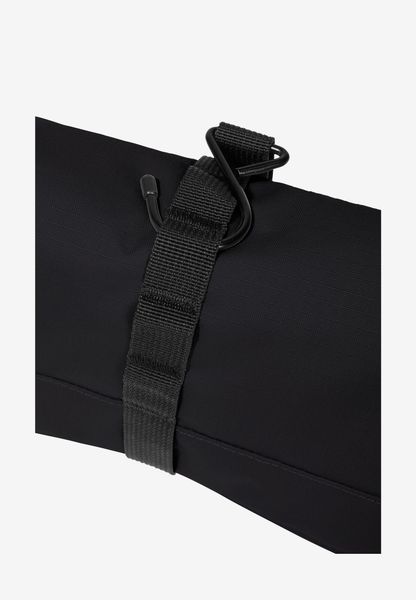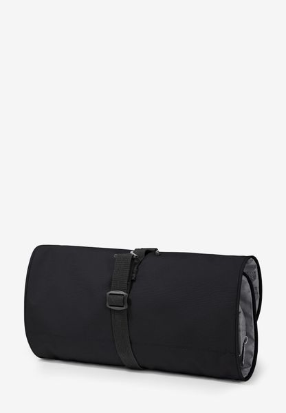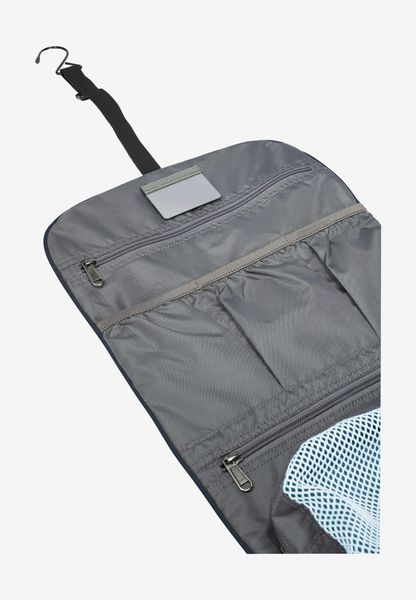 "A special highlight is the roll-up function, which makes it possible to store the bag compactly when it is not in use. The stowable and rollable metal hook ensures that the bag can be hung up anywhere, whether in the hotel bathroom or on the tree when camping. The elastic mesh front pocket and the three hidden pockets offer additional storage space and help to keep all items neatly organized"