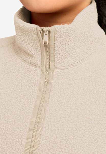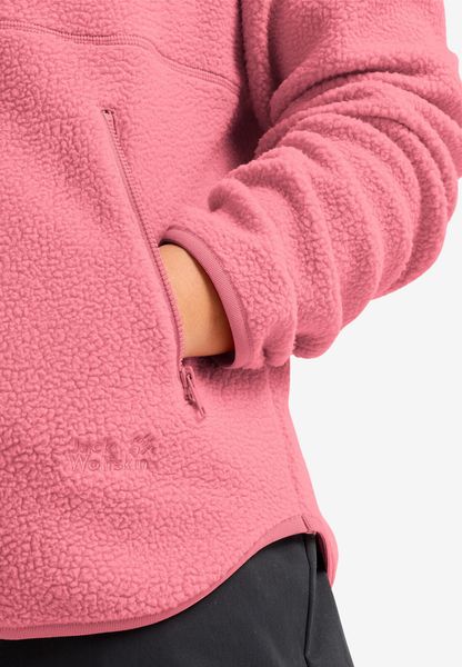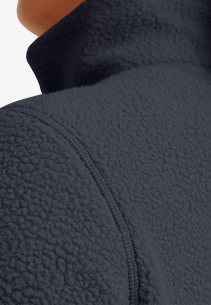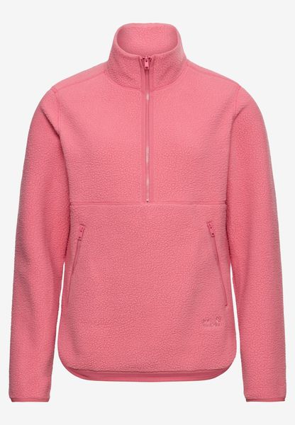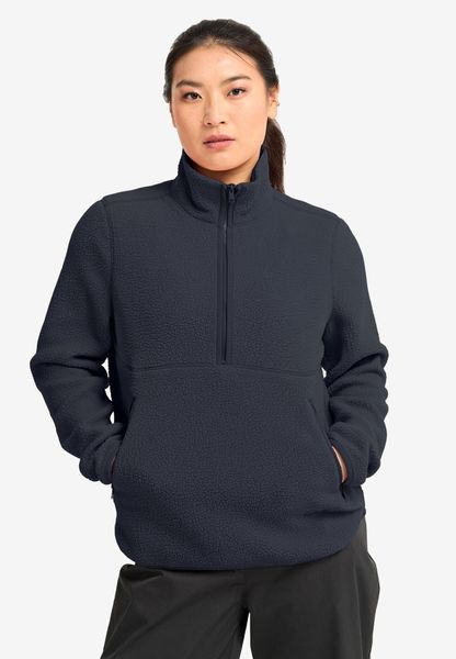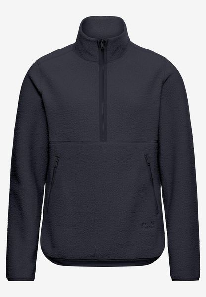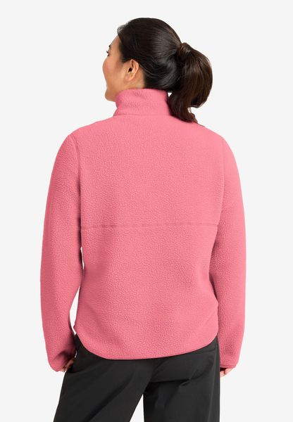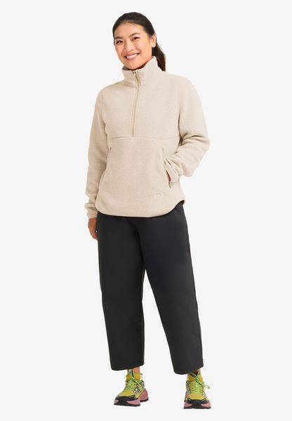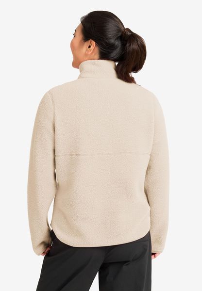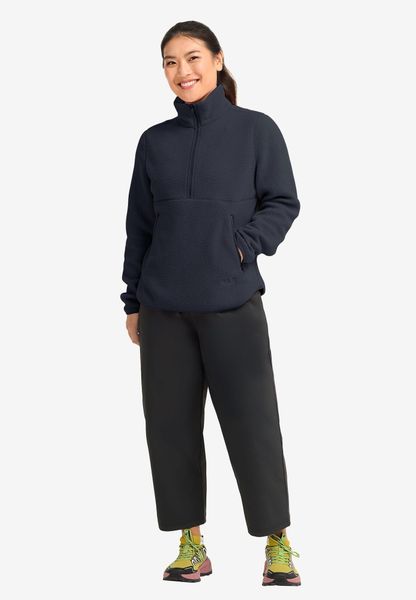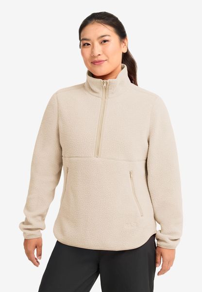 "The Lite Curl Half Zip W from Jack Wolfskin is the ideal companion for urban exploration and everyday wear. This warm half-zip sweater for women impresses with its soft fleece material, which ensures comfortable warmth, and a loose fit that offers maximum freedom of movement. The high collar with half zip and elasticated cuffs not only give the sweater a casual look, but also offer additional protection against the cold."