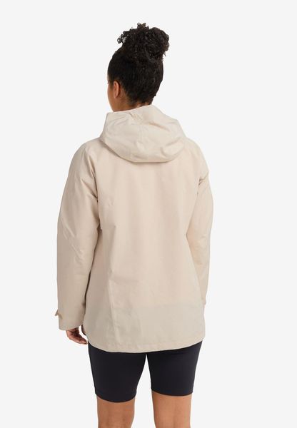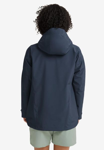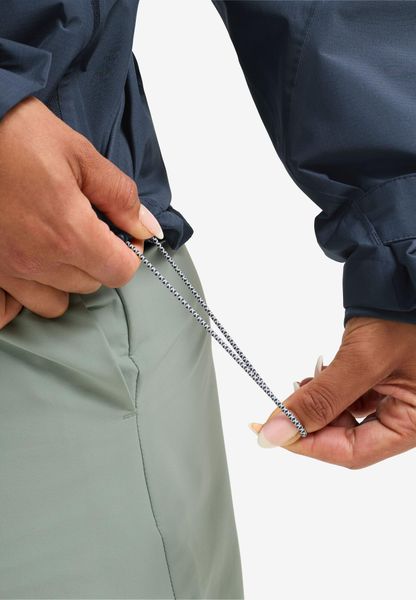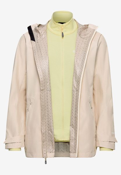 "The breathable membrane with a breathability of 15,000 g/mu00b2/24h ensures that you don't break a sweat even during strenuous activities. The adjustable hood and water-repellent zips provide additional protection from the elements, while the practical stow pocket and two hip pockets with zips offer plenty of space for your essentials. With a back length of 61 cm for the inner jacket and 73 cm for the outer jacket, it is ideally cut to ensure optimum comfort."