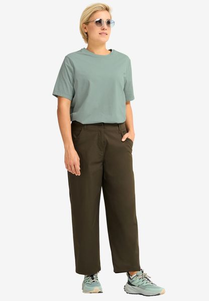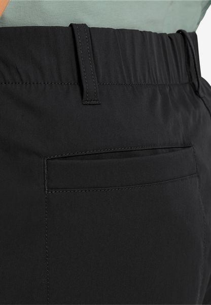 "Experience carefree comfort and unlimited freedom of movement with the MAHANI 7/8 Pants W from Jack Wolfskin. These women's trousers are ideal for everyday wear and leisure activities in the city and at work. The regular fit design ensures a perfect fit, while the partially elasticated waistband and belt loops with a carabiner loop provide additional support. Equipped with two hip pockets and two back pockets, the trousers offer practical storage space for small everyday itemsu00e4nde."