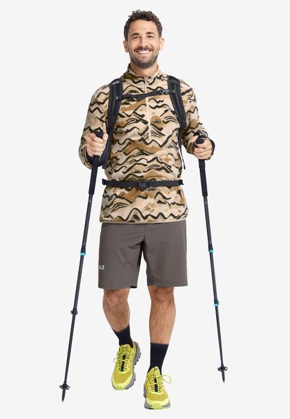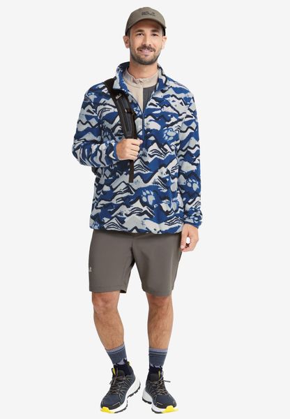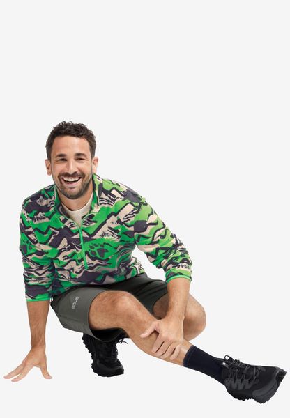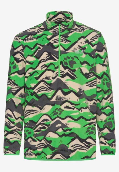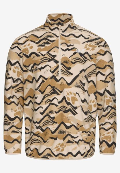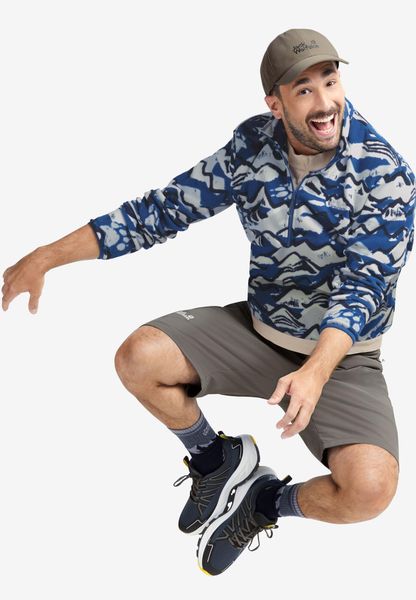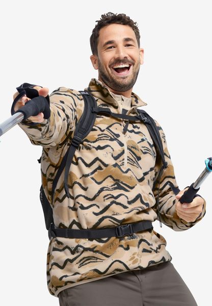 "Experience freedom and adventure with the PAW ERA 100 Print Half Zip M from Jack Wolfskin u2013 your reliable companion for spontaneous nature excursions. This men's fleece sweater is a versatile mid-layer that is perfect for hikes. Thanks to its relaxed loose fit and elasticated waistband, it offers unrestricted freedom of movement. The sweater is made from high-quality fleece material, which is known for its elasticity and therefore guarantees optimum comfort."