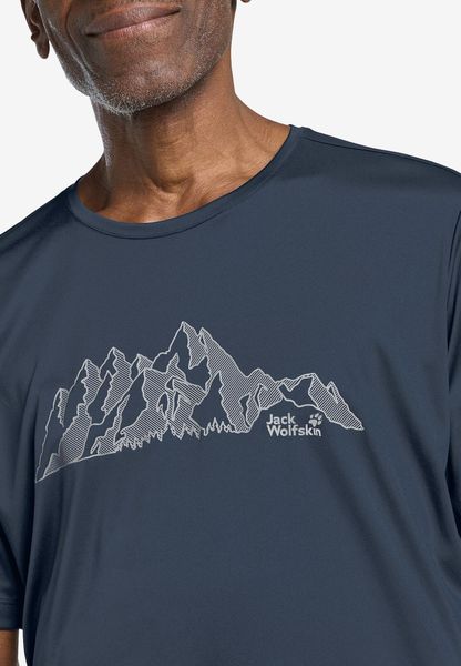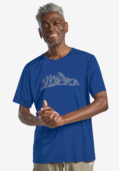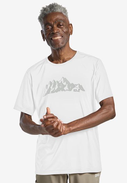 "The PEAK GRAPHIC T M from Jack Wolfskin is the ideal T shirt for men who value comfort and functionality both when hiking and in everyday life. Made from the innovative TEXADRI material, it offers excellent breathability and dries quickly, so you can always enjoy a pleasant wearing comfortu00u00f6n. Thanks to the odor-inhibiting MICROBAN treatment, the shirt remains fresh and comfortable to wear even during intensive activities. With a back length of 72 cm, it offers an optimal fit and is a reliable companion for all your adventures, whether in nature or in the city"