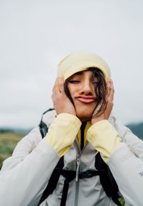 "Lightweight, breathable jacket with complete weather protection for active hikes in cold weather."