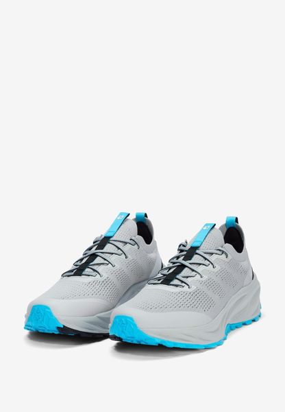 "The shoes are equipped with a very grippy rubber outsole that offers secure grip on a wide variety of surfaces, whether on rocky paths or muddy trails. The padded textile lining on the inside ensures maximum comfort, while the long lacing allows for individual adjustment to ensure the perfect fit. With their low-cut shaft height, they offer the perfect balance between freedom of movement and stability."
