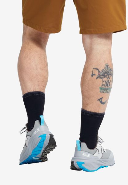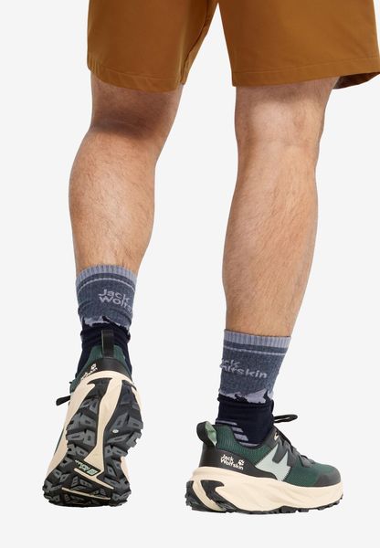 "Experience the perfect combination of comfort and functionality for your outdooradventures with the PS Trail Low M from Jack Wolfskin. These versatile hiking boots are ideal for activities such as hiking, speed hiking and everyday use. Thanks to the breathable mesh and synthetic material, your feet stay pleasantly cool and dry even during intensive movements. The padded textile lining ensures maximum comfort, while the cushioning EVA midsole and footbed provide a pleasant walking sensation."