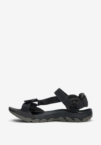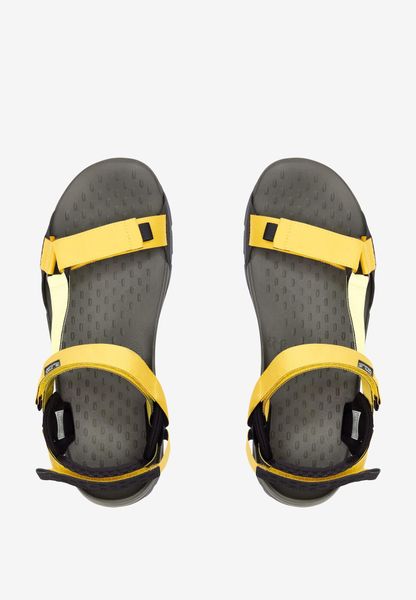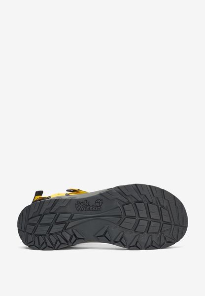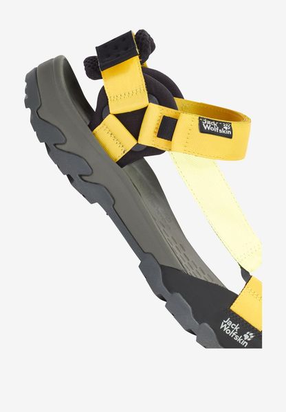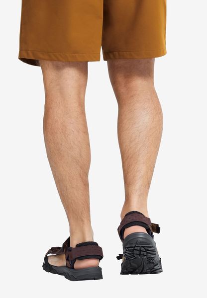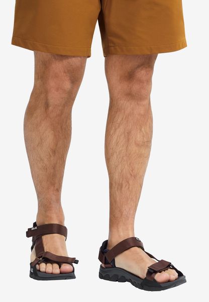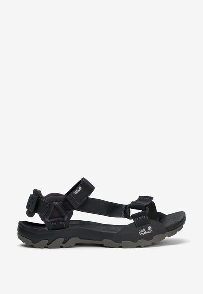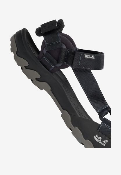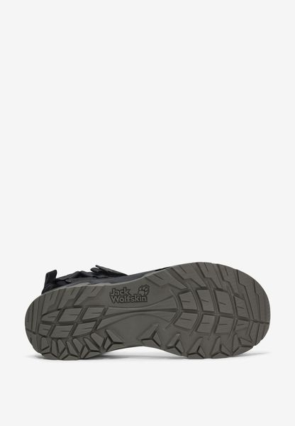 "The RIDGE SANDAL M from Jack Wolfskin is the ideal companion for men who want to pursue urban adventures and work in their free time. This casual sandal combines a robust synthetic and textile upper construction with a sophisticated design that ensures maximum comfort and adaptability. Thanks to the adjustable Velcro straps and the open design, you can enjoy excellent ventilation and easy adjustment to your foot shape. The padding on the heels and the cushioning EVA footbed ensure a comfortable fit, even on uneven terrain. The grippy rubber outsole also offers secure grip on different surfaces. Whether you're strolling through the city or exploring new trails, the RIDGE SANDAL M offers you the comfort and stability you need."