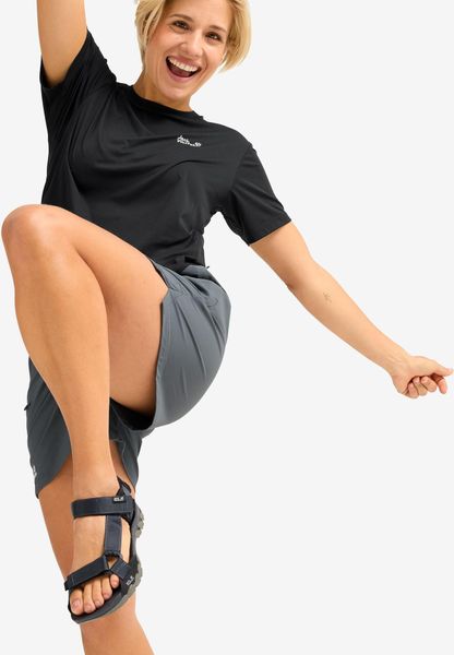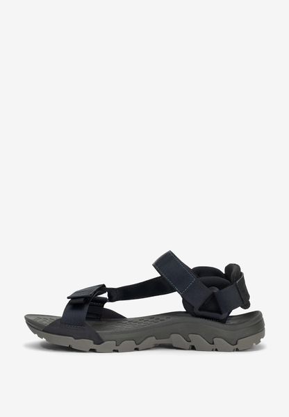 "The RIDGE SANDAL W from Jack Wolfskin is the ideal companion for active women who value comfort and versatility. This casual sandal is designed for everyday wear as well as hiking and leisure activities. The robust synthetic and textile upper construction not only offers durability, but also a lightweight feel. The cushioning pads on the heels and the shock-absorbing EVAfootbed make every step a pleasant experience"