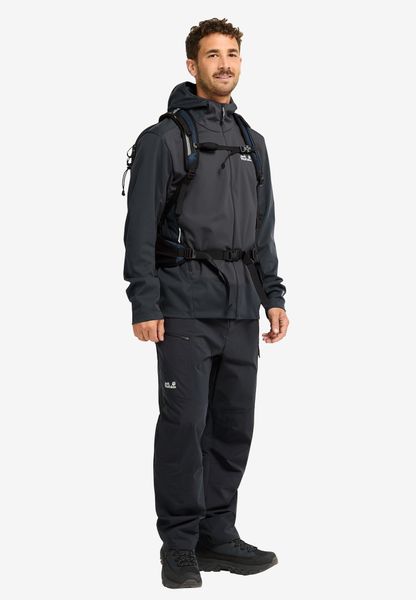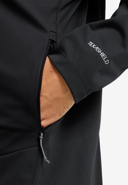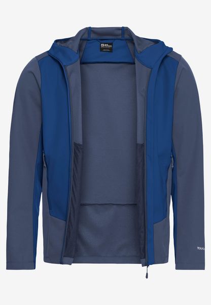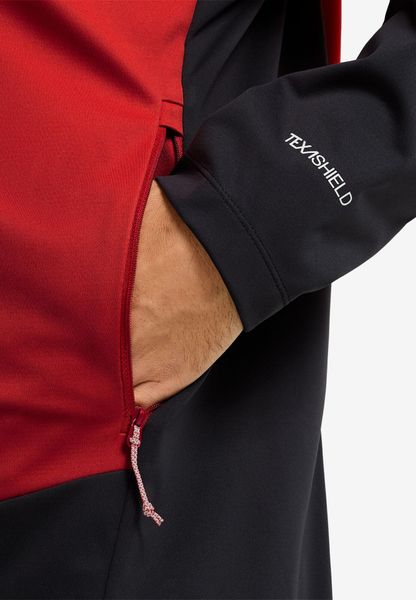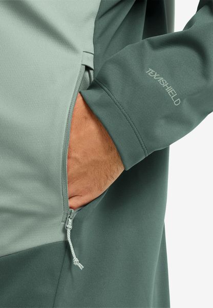 "Experience adventure in a new, genuine wayu2013 with the Skyvail Jacket M from Jack Wolfskin you are ready to tackle any challengeu2013. This men's jacket combines optimum comfort with the innovative TEXASHIELD PRO technology, which is windproof and highly water-repellent. This means you are well protected even on damp and stormy days. The lightweight, three-layer material ensures outstanding breathability, while the slim cut does not restrict your freedom of movement. The fixed hood gives the jacket a sporty look and offers additional protection."