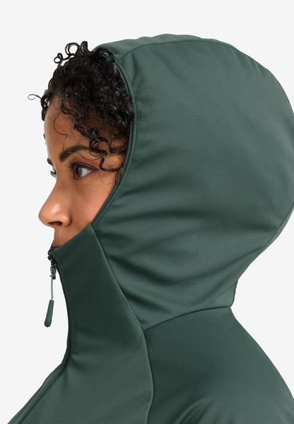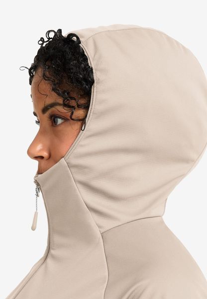 "The high-quality nylon material is not only extremely breathable, but also stretchy, which guarantees unrestricted freedom of movement u2013 perfect for active women who value comfortu2013. The jacket is equipped with a fixed hood that offers additional protection in windy conditions, while the thumb loops ensure that the sleeves always stay in place."