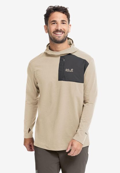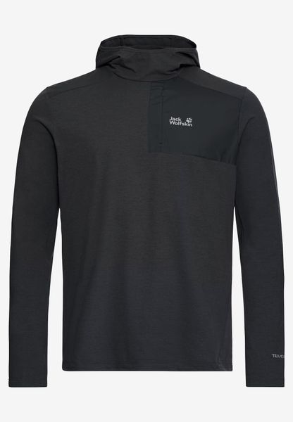 "The Sucol Hoody M from Jack Wolfskin is the ideal companion for active men who demand the highest standards of freedom of movement and comfort for both hiking and leisure activities. This sporty hoodie impresses with its regular fit and practical hood, which offers protection from the wind and weather. Equipped with a zippered chest pocket and thumb loops, the hoody combines functionality with a modern design."