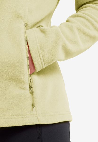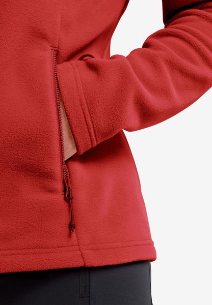 "With a back length of 63 cm and two practical hip pockets with zippers, the jacket offers plenty of storage space for the small items you need on the go. The clean, minimalist look makes the Taunus 100 Full Zip W a stylish companion on all hiking trails"