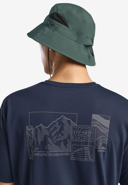 "The Vent Bucket Hat is unisex and can be individually adjusted thanks to an adjustable chin strap, which ensures additional support and comfort. Whether on a hike through the mountains or a walk in the park, this hat is the perfect addition to your outdooroutfit."