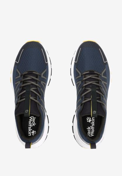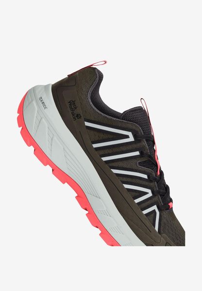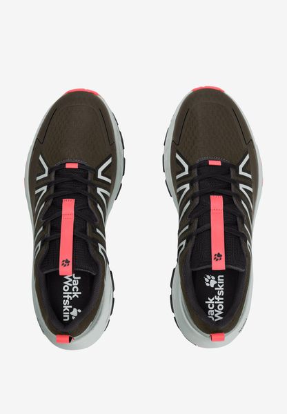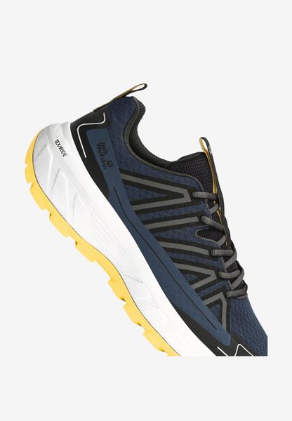 "Discover new paths and adventures with the Wild Hike Low M hiking boots from Jack Wolfskin. These lightweight men's hiking shoes are perfect for hiking and everyday wear and offer a high level of comfort thanks to their padded textile lining. The breathable mesh and synthetic upper construction ensures a pleasant foot climate, even on longer tours."