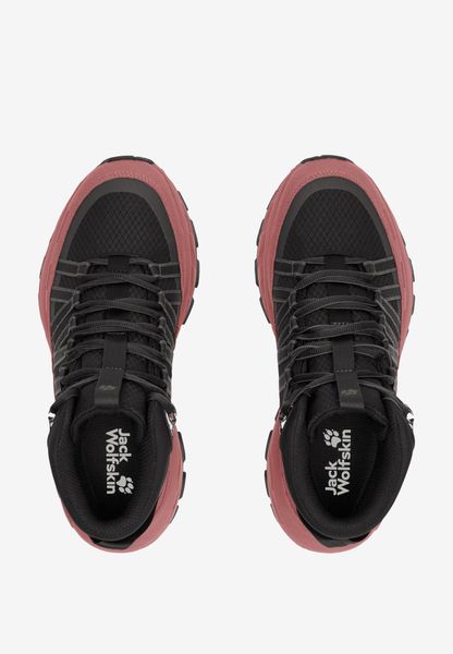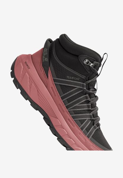 "Experience adventures in nature with the Wild Hike Texapore Mid W hiking boots from Jack Wolfskin, which have been specially developed for women. These waterproof hiking boots are equipped with a breathable TEXAPORE membrane that keeps your feet dry even in wet conditions. The mid-height shaft offers optimum support and protects against the ingress of dirt and water, while the grippy rubber outsole ensures a secure grip on any surface, whether in the local park or on challenging mountain trails."
