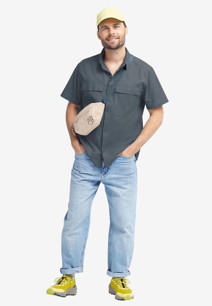 "Experience the urban lifestyle with the WILD NEP SHIRT M from Jack Wolfskin, a men's shirt that is made for everyday adventures. Made from high-quality organic cotton, this shirt is not only comfortable to wear, but also a sustainable choice for environmentally conscious fashionistas. The two practical breast pockets and button placket give the shirt a functional touch, while the rounded hem ensures a modern silhouette. With a back length of 74 cm, it fits perfectly and offers maximum freedom of movement and comfort thanks to the soft wool material. Whether you're strolling through the city or traveling, this shirt is the ideal companion for any occasion."
