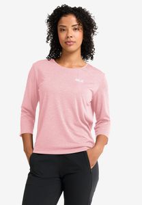 "The WILDTRAIL 3/4 W T Shirt by Jack Wolfskin is the perfect choice for active women who value comfort and functionality. This lightweight baselayer shirt is specially designed for leisure activities and hikes and offers maximum freedom of movement thanks to its loose cut. The innovative TEXADRI fiber technology ensures that moisture is efficiently wicked away, making the shirt quick-drying and extremely breathable. With a back length of 60 cm and practical side slits, it is ideal for layering. Certified as bluesignu00aePRODUCT, it meets high environmental standards and is therefore a sustainable choice for environmentally conscious adventurers. Whether on the trail or in the city, this shirt offers the perfect balance between style and function"