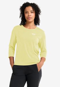 "The WILDTRAIL 3/4 W T Shirt by Jack Wolfskin is the perfect choice for active women who value comfort and functionality. This lightweight baselayer shirt is specially designed for leisure activities and hikes and offers maximum freedom of movement thanks to its loose cut. The innovative TEXADRI fiber technology ensures that moisture is efficiently wicked away, making the shirt quick-drying and extremely breathable. With a back length of 60 cm and practical side slits, it is ideal for layering. Certified as bluesignu00aePRODUCT, it meets high environmental standards and is therefore a sustainable choice for environmentally conscious adventurers. Whether on the trail or in the city, this shirt offers the perfect balance between style and function"