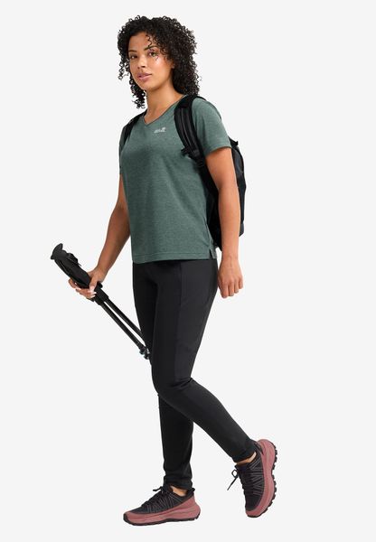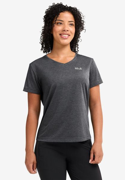 "The Wildtrail T W from Jack Wolfskin is the ideal T-shirt for women who want to combine adventure and comfort in their everyday life. With its lightweight, functional design and loose fit, it offers optimum freedom of movement and maximum comfort. Whether for hiking, leisure or everyday useu2013 this Tshirt adapts perfectly to any activityu00e4t. The innovative TEXADRI technology ensures that moisture is efficiently wicked away from the skin so that the shirt dries quickly and always guarantees a comfortable feel. Thanks to its moisture-regulating and highly breathable properties, the skin stays dry and cool even during intense activities. With side slits and a back length of 58 cm, the T-shirt not only offers functionality, but also a modern look. As a bluesignu00aePRODUCT, it also meets high environmental standards and is a sustainable choice for environmentally conscious adventurers."
