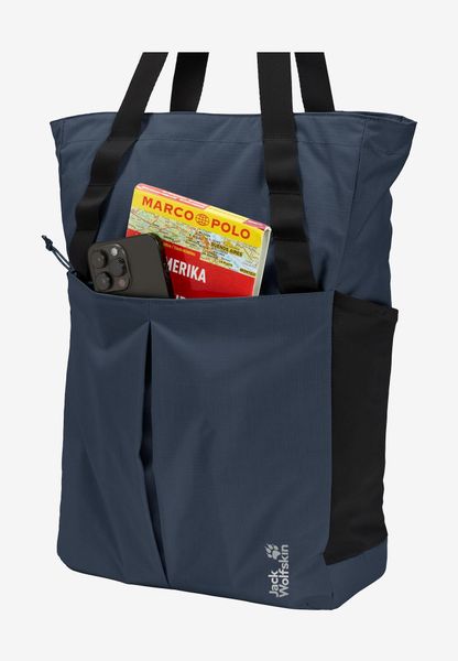 "The ZOYA 2IN1 tote from Jack Wolfskin is the perfect companion for everyday urban life, work and spontaneous leisure activitiesu00e4ten. With its innovative 2-in-1 design, this convertible carrier bag can be used both as a classic tote-bag and as a practical backpack. Made from robust nylon, it not only offers durability, but also style and functionality in one."