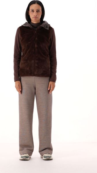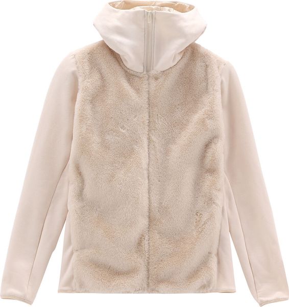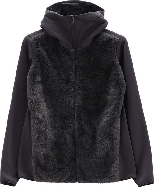 "Innovative hybrid jacket made from stretch material and eco-fur for comfort and style with every movement."