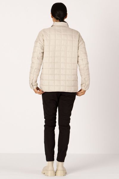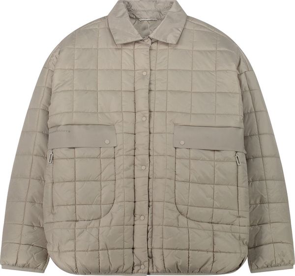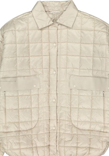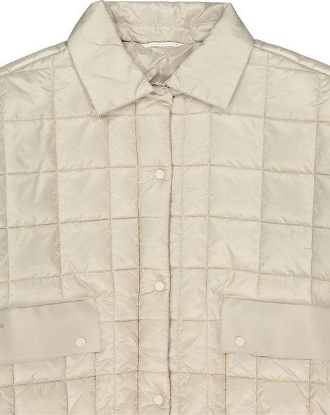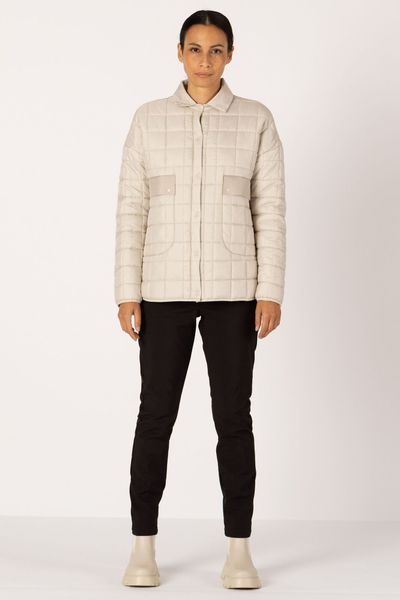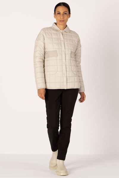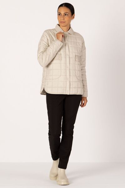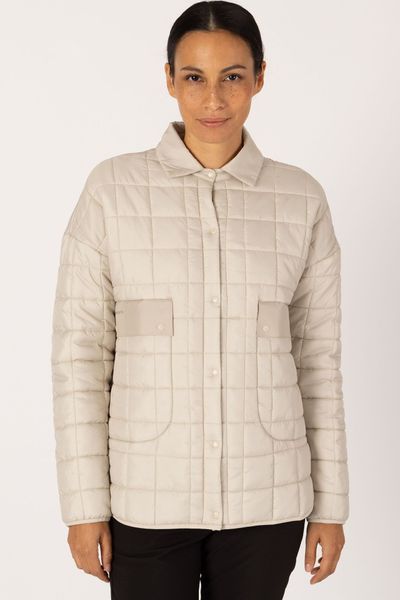 Stylish, water-repellent women's shirt jacket made from recycled nylon with light padding, ideal for traveling and everyday wear.