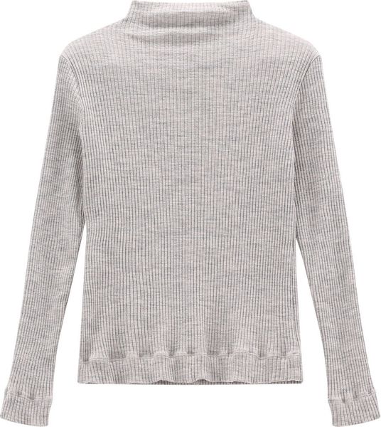 "The Cyclamen turtleneck sweater from Jeanne Baret is the ideal choice for cool days. Made from a wide ribbed jersey, this long-sleeved sweater offers excellent heat retention and comfort. The combination of viscose and virgin wool ensures a soft feel and high elasticity that adapts perfectly to the contours of the body without constricting. The elegant melange design gives the sweater a sophisticated look that will impress both in everyday life and on special occasions. The sweater is also certified in accordance with the OEKO-TEXu00ae standard, which means that it is free from harmful substances and has been produced in an environmentally friendly way. The Cyclamen turtleneck sweater is therefore not only a fashion highlight, but also a sustainable choice for your wardrobe."