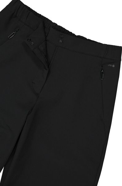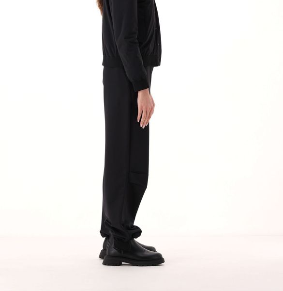 "The elasticated waistband of the trousers ensures a comfortable fit, while the front opening with zipper and double press stud provides additional support. Practical details such as the two side pockets with invisible zips make these trousers a functional everyday urban companion. The double pleats on the knee guarantee ergonomics and freedom of movement, allowing you to move freelyu00f6n"