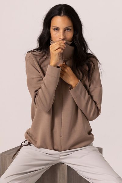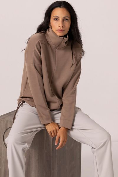 An adjustable drawstring at the bottom of the sweater makes it possible to adjust the length and shape individually. The sweater is made from modal, an environmentally friendly fabric made from wood cellulose. Modal is naturally breathable and has a particularly soft feel, which makes it extra comfortable to wear. This women's sweater is a perfect combination of style, functionality and sustainability.