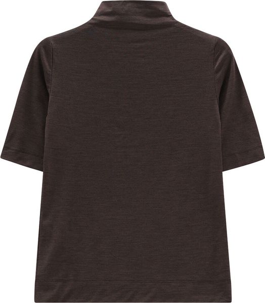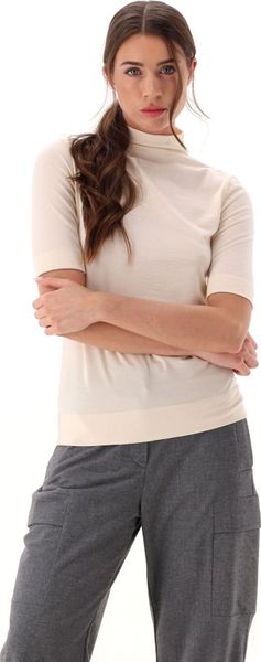"Elegant and functional T-shirt made from pure new wool with three-quarter sleeves and a crater collar."