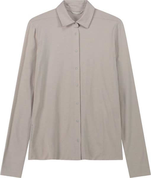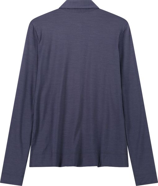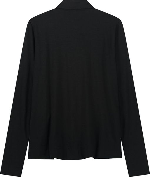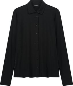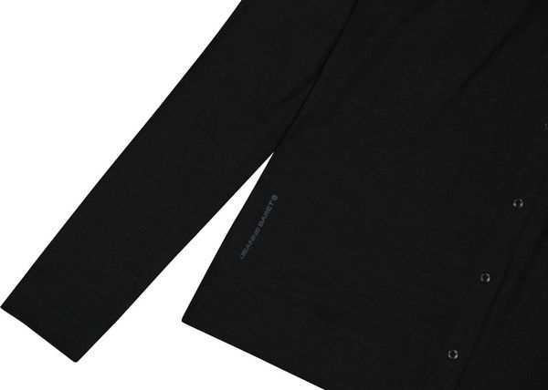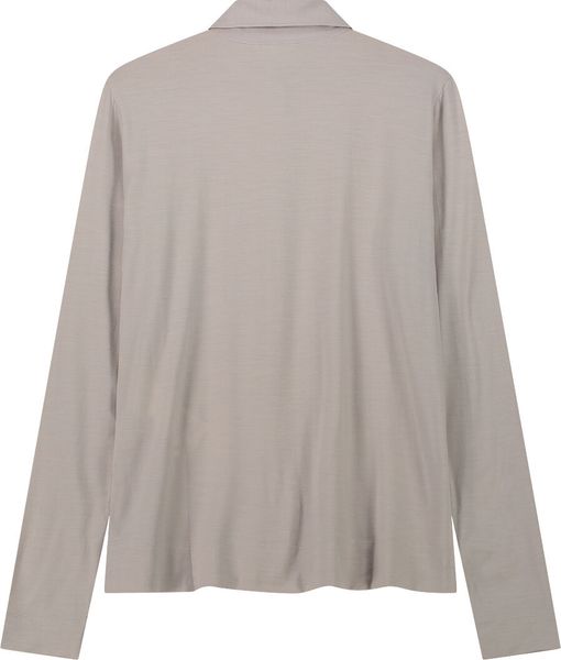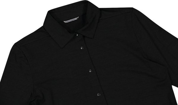 Elegant and comfortable stretch wool jersey shirt with thumbholes and tonal press studs for versatile style.