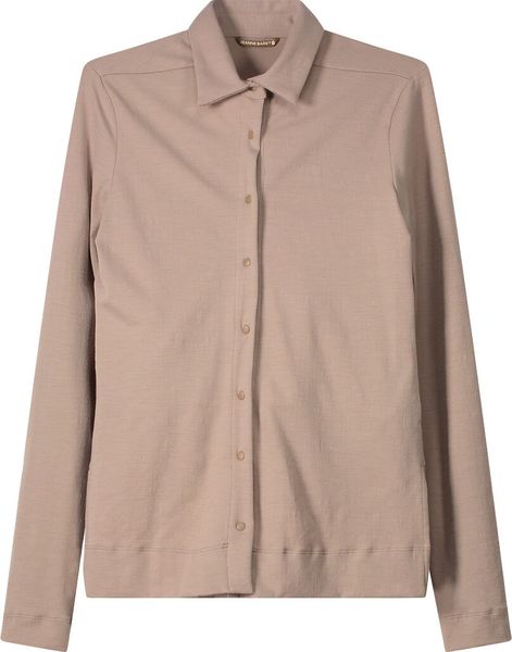 The Navarino shirt by Jeanne Baret is a true masterpiece made from high-quality stretchwool jersey. It impresses with its slim fit that elegantly hugs the body, emphasizing a feminine silhouette. The cuffs are finished with thumbholes, which not only adds an original touch, but also provides additional practicality.