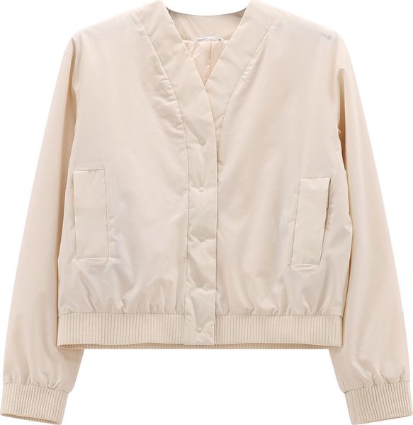 "Lightly padded transition jacket with a modern design and practical cardigan cut for comfort and style."