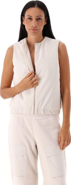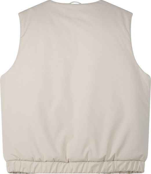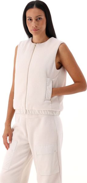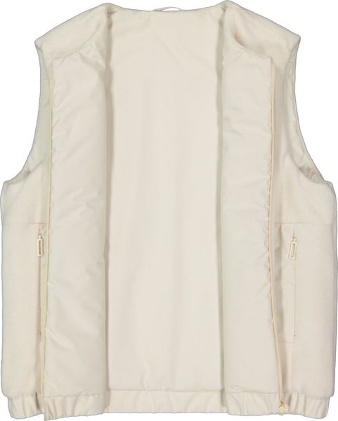"Practicality meets style with the two front pockets, which are equipped with invisible zippers to keep your valuables safe. An additional fabric pocket with flap closure on the back offers extra storage space and underlines the sophisticated design of the vest. The elasticated hem ensures a perfect fit and prevents cold air from penetrating."