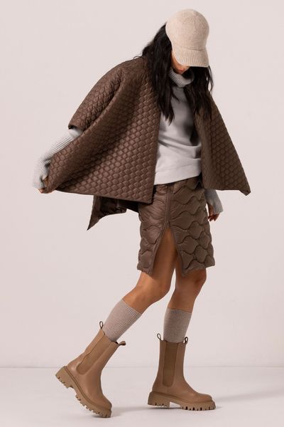Elegant and functional women's poncho with water-repellent treatment and light padding for pleasant warmth.