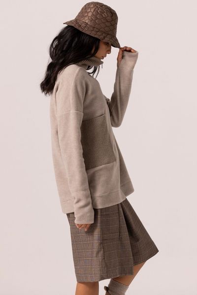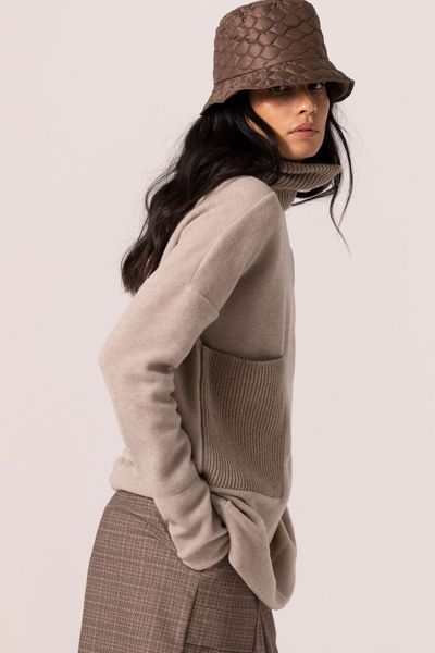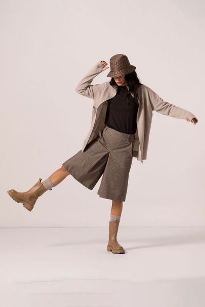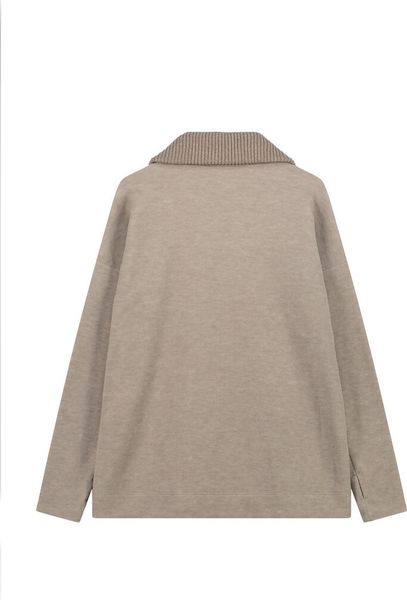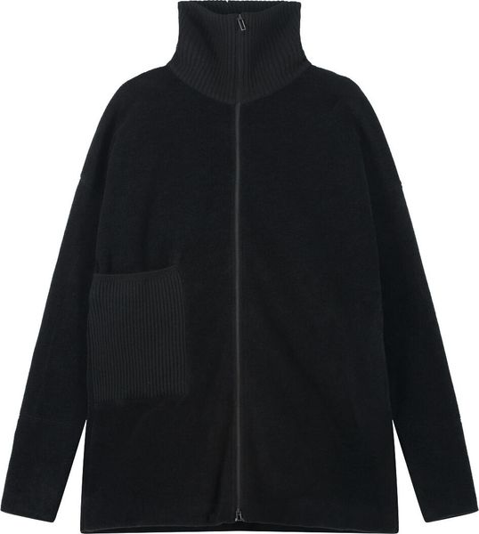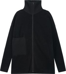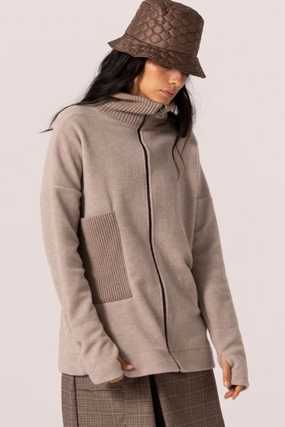 The Wallis long cardigan by Jeanne Baret is a masterpiece made from high-quality wool fleece with unique wool rib inserts. With its casual cut and oversized shoulders, it exudes a relaxed elegance, perfect for fashion-conscious ladies. The high wool rib collar gives the design an additional sophisticated touch. Practical details such as a wool ribbed knit pocket on one side and an invisible zipped pocket on the other make this cardigan particularly versatile.
