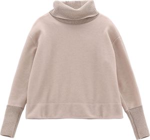 "Stylish virgin wool fleece sweater with a high collar for warmth and comfort on cold days."