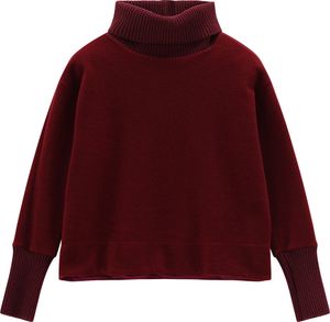 "Stylish virgin wool fleece sweater with a high collar for warmth and comfort on cold days."