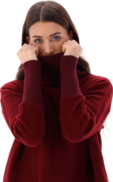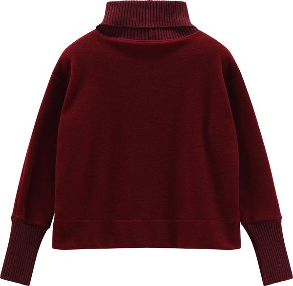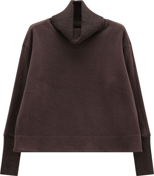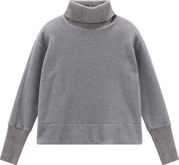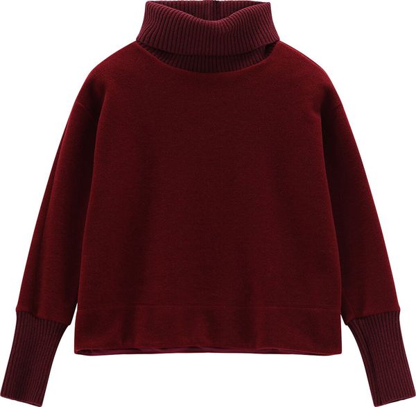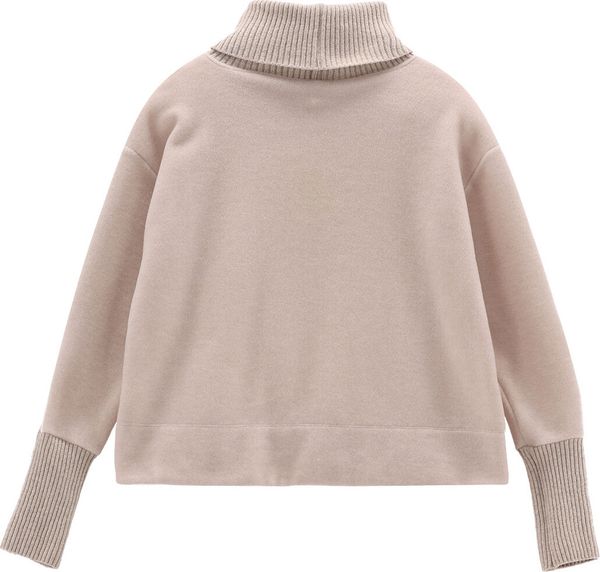 "Stylish virgin wool fleece sweater with a high collar for warmth and comfort on cold days."