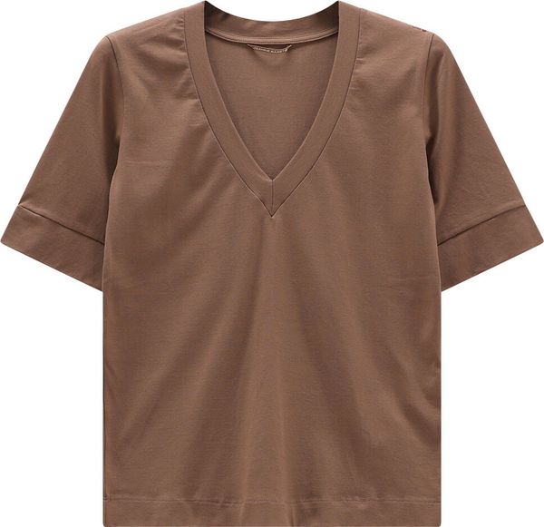 "Stretchy women's slim-fit shirt with a V-neck made from fine cotton jersey for comfort and moisture regulation."