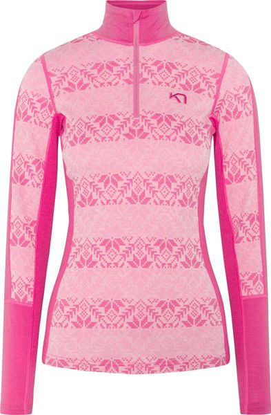 "The Anna Half Zip by Kari Traa is the perfect companion for all women who don't want to compromise on style and functionality when skiing or in their free time. Made from high-quality, ultrasoft 19.5 micron merino wool, this slim fit pullover not only offers exceptional comfort, but also superior thermal insulation, whether the wool is wet or dry. The high, cozy collar and half zip ensure optimum protection against the cold and allow for pleasant ventilation when required."