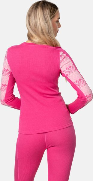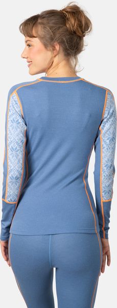 "The Anna longsleeve by Kari Traa is the perfect companion for all women who want to feel comfortable when skiing or doing other outdoor activities. Made from high-quality, ethically sourced merino wool, this longsleeve not only offers excellent warmth, but also maximum comfort directly next to the skin. Thanks to the 19.5 micron fine wool fibers, the thermal insulation is maintained even when wet. The slim fit and intelligent fabric inserts ensure unrestricted freedom of movement, while the raglan sleeves and flat seams prevent chafing and skin irritation."