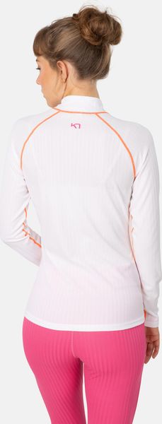 "The Ella Halfzip by Kari Traa is the perfect choice for active women who value functionalityu00e4t and styleu00e4t. This lightweight, ribbed functional underwear impresses with its bright colorblocking design and is a real eye-catcher for any sporting activity. The half zip allows you to adjust the ventilation individually, which is particularly beneficial during intensive workouts or in changeable weather. The slim fit design and raglan sleeves ensure a flattering fit that hugs the body perfectly"