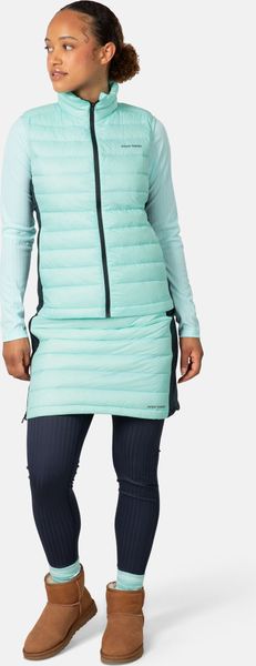 "The Emilie Down Vest by Kari Traa is the ideal companion for all women who spend time outdoors in cooler temperatures, whether hiking, traveling or everyday life. This down vest combines stylish design with practical functions. The water-repellent DownProof material ensures that you stay dry even in changeable weather. With a fill power of 400-450 and a fill weight of 70 g, it offers excellent thermal insulation, while the elasticated side panels with brushed fleece provide additional comfort."