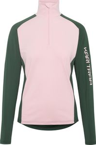 "The regular fit design with raglanu00c4sleeves ensures an optimal fit and freedom of movement. The half zip with chin guard protects your skin and makes it easier to put on and take off. Whether for training or on the slopes, the Evelyn midlayer from Kari Traa is always the right choice for women who value comfort and functionality."