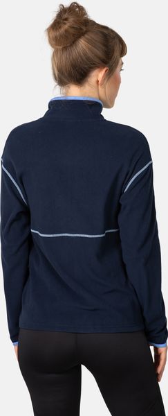 "Practical features such as the full-length zip with chin guard and hand pockets make the Gracie mid-layer a functional companion. The elasticated hem and sleeve cuffs guarantee a perfect fit and prevent cold air from penetrating. A particular highlight is that over 50% of the material is made from recycled synthetic fabrics, making this mid-layer an environmentally friendly choice."