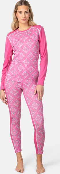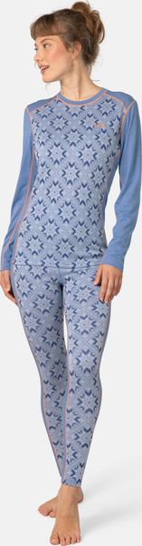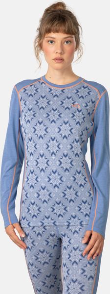 "The Iselin longsleeve by Kari Traa combines stylish Nordic prints with vibrant color blocking to add a special accent to any outfit. This long-sleeved shirt is specially designed for women and is made from a high-quality wool-synthetic blend that is not only known for its luxurious comfort, but also for its superior thermal performance. The 19.5 micron merino wool used ensures a particularly soft feel and keeps you warm even in wet conditions. Thanks to the smooth flatlockNu00e4threads, chafing is prevented, which ensures comfort all day long."