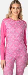 "The Iselin longsleeve by Kari Traa combines stylish Nordic prints with vibrant color blocking to add a special accent to any outfit. This long-sleeved shirt is specially designed for women and is made from a high-quality wool-synthetic blend that is not only known for its luxurious comfort, but also for its superior thermal performance. The 19.5 micron merino wool used ensures a particularly soft feel and keeps you warm even in wet conditions. Thanks to the smooth flatlockNu00e4threads, chafing is prevented, which ensures comfort all day long."