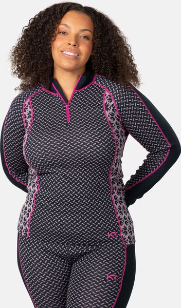 The Kari Traa Lekker Half Zip is a playful yet performance-oriented baselayer that combines lightweight, quick-drying materials with body-hugging merino wool for ultimate adventure activation.