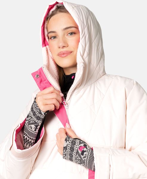 "The Malene Cape by Kari Traa is the perfect combination of style and functionality for women who are out and about in urban environments or at work. Thanks to its water-repellent properties with a wateru00e4ule of 5000 WP and breathability of 5000 MVP, it offers optimal protection from the elementsu00e4t. The cape is padded and padded with 160g padding for comfortable warmth. The strategically placed teddy lining provides additional warmth, while the high, cozy collar ensures comfort even on chilly days."